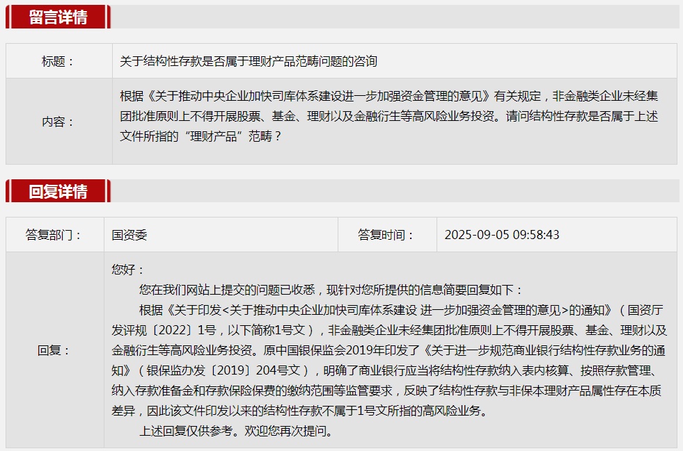 1、关于结构性存款是否属于理财产品范畴问题的咨询