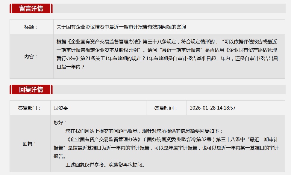 5.关于国有企业协议增资中最近一期审计报告有效期问题的咨询